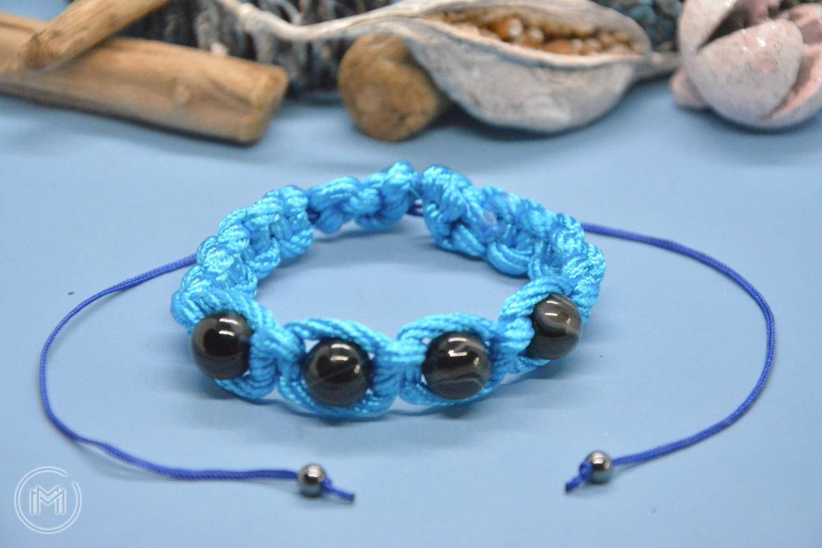 Náramek je vázán pomocí tzv. 'posuvného schamballa uzlu' pomocí kterého můžete velikost náramku zvětšit nebo zmenšit. Snadno jej tak nasadíte a poté můžete utáhnout.