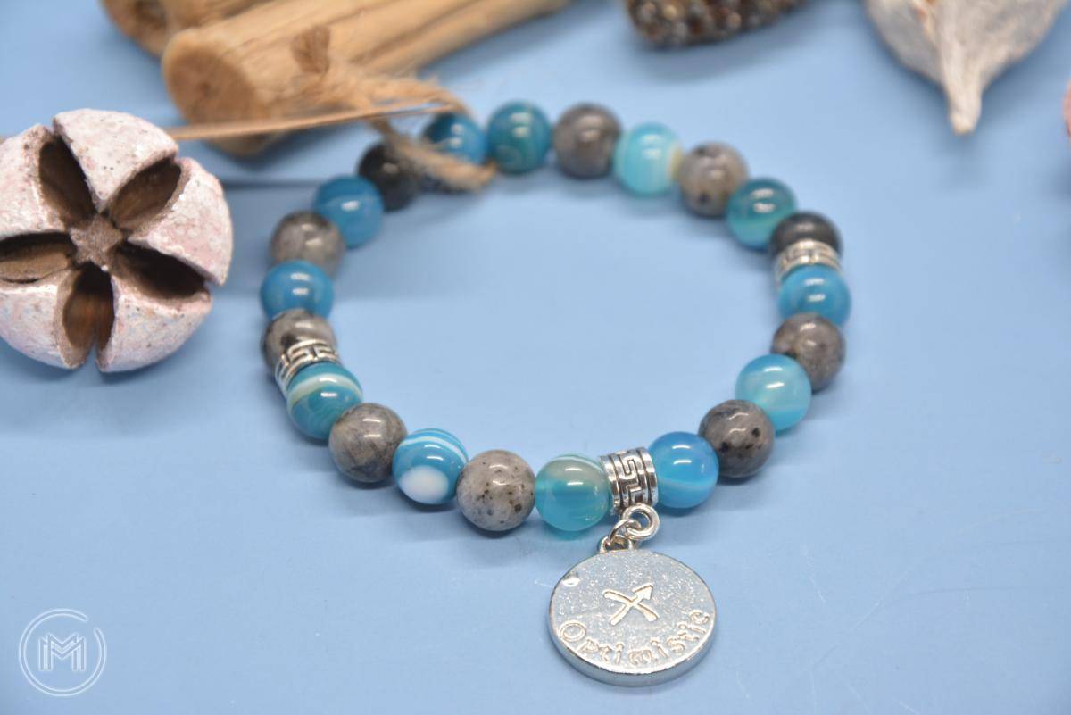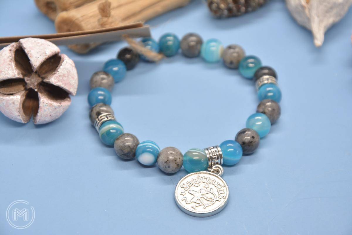 Náramek z larvikitu a achátu s přívěskem střelce