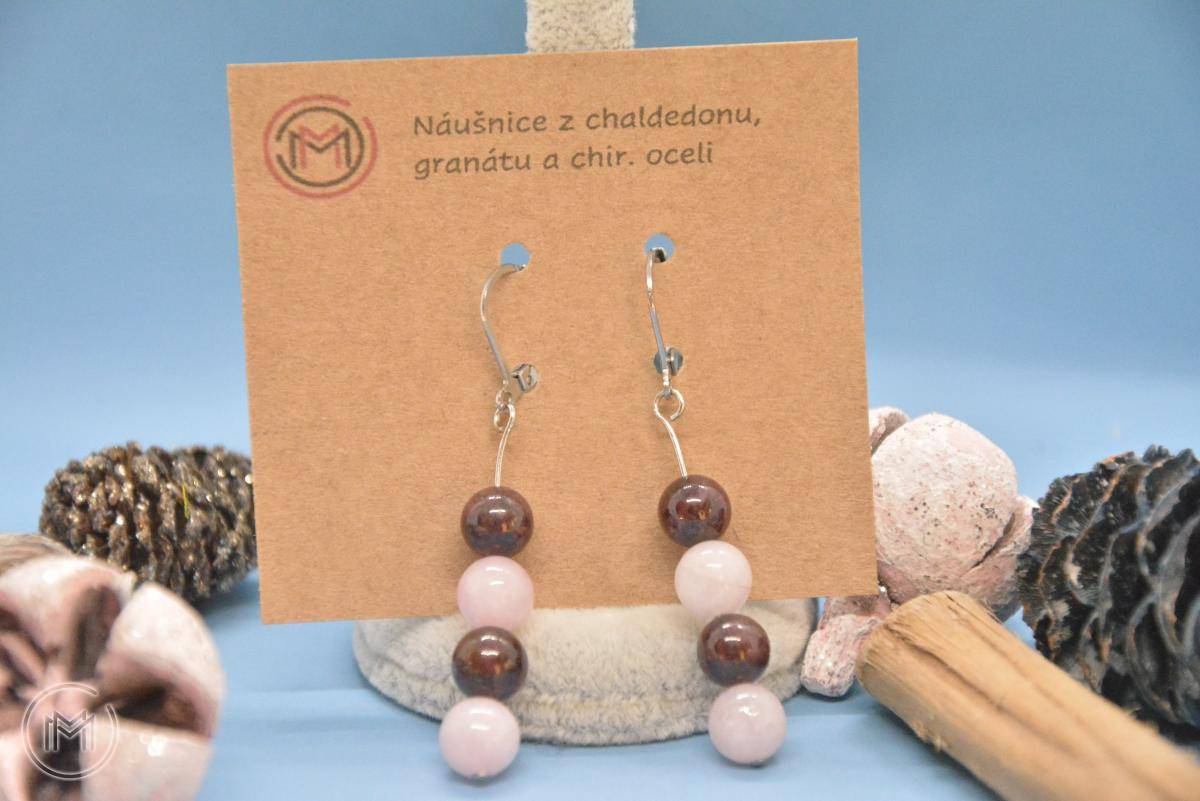 Náušnice z chalcedonu a granátu zapínací